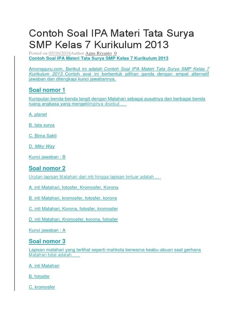 Sistem tata surya luar angkasa wirahadie com. Materi susunan tata surya pengertian teori urutan gambar soal tata surya kelas 7 tata surya merupakan sebuah pelajaran yang membahas tentang sistem antariksa yang berkaitan dengan geravitasi terhadap benda. Berikut ini kunci jawaban dari soal benua afrika yang bisa anda baca dan pahami dengan baik untuk lebih mudah memahami materi ini. Prominensa merupakan lidah api yang sangat terang. soal dan jawaban sistem tata surya pilihan ganda hallo sobat semua kali ini saya akan memberikan beberapa soal beserta kunci jawaban dan pembahasan harapan saya dengan adanya artikel ini dapat membantu sobat dalam belajar sekaligus bisa juga untuk mengasah kemampuan sobat selamat belajar. Matahari adalah bintang yang memiliki massa sangat besar. soal ipa kelas 6 semester 1 dan kunci jawaban. Dalam artikel ini saya akan membagikan 10 contoh soal narrative text dan kunci jawaban terbaru untuk pelajar sekolah menengah pertama kelas 7 8 atau 9 smpmts. 29 contoh soal cpns 2018 untuk sma kumpulan contoh soal. Selain soal yang akan disajikan disini saya juga telah menyiapkan kunci jawaban serta pembahasannya di setiap soal yang di berikan. Khanza aulia kelas 6, kumpulan soal no comments. Bangun yang memiliki 3 buah sudut dan 3 buah sisi adalah. Sejarah, bunyi, rumus dan contoh soal latihan soal.