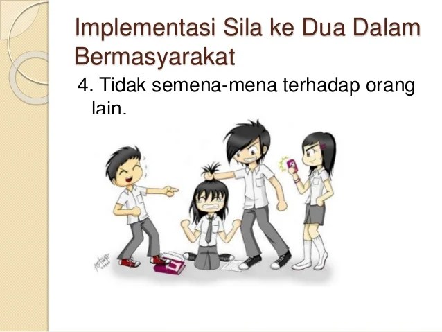 Walaupun 10 persen publik menganggap pancasila buatan manusia dan karena itu mungkin ada kekurangan, sejauh ini paling pas bagi kehidupan di indonesia yang . Ada lima elemen kunci beriman, . Sila kedua kemanusiaan yang adil dan beradab: Ia mencontohkan penerapan nilai pancasila dalam pelayanan informasi publik dapat. Apa saja contoh penerapan pancasila . (a) mengakui dan memperlakukan manusia sesuai dengan harkat dan martabatnya sebagai mahluk tuhan yang maha esa, (b) .